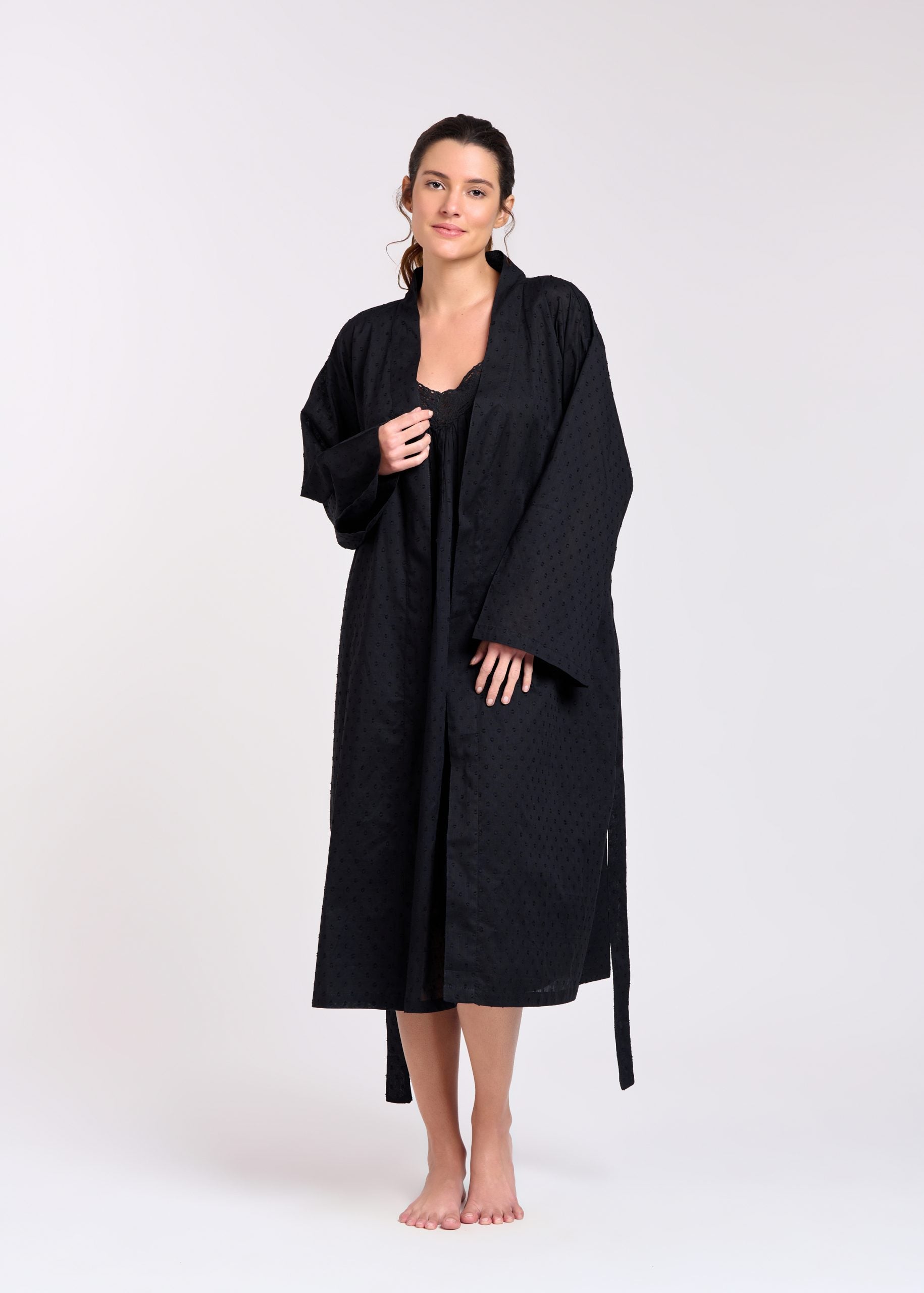 We just love these gorgeous cotton robes in a variety of prints. This one comes in a black hail spot pattern and would look lovely over the black nightie.