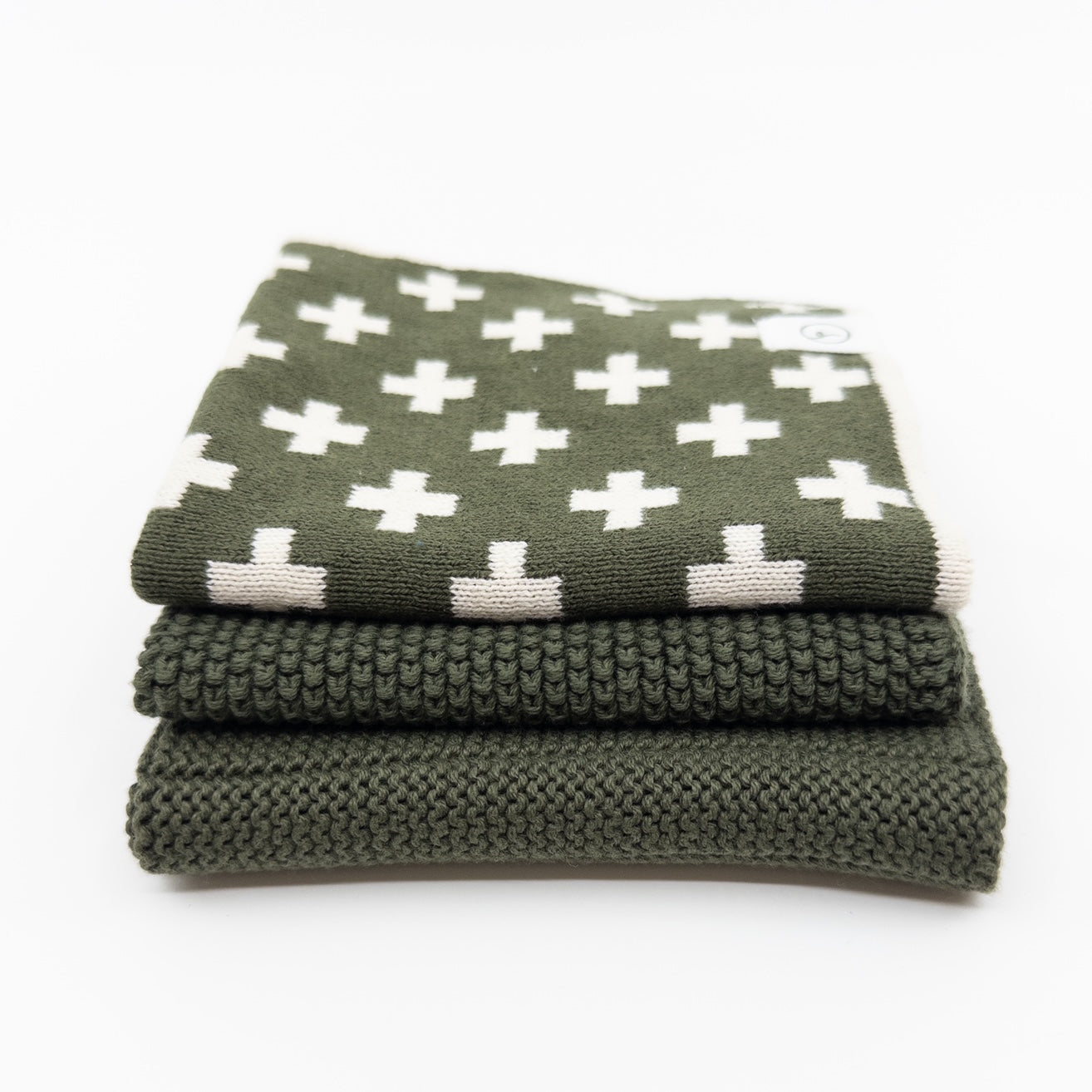 Finely knitted from organic cotton our cloths are absorbent and super functional as well as adding a splash of style and colour to your kitchen. The perfect alternative to disposable synthetic dish cloths.