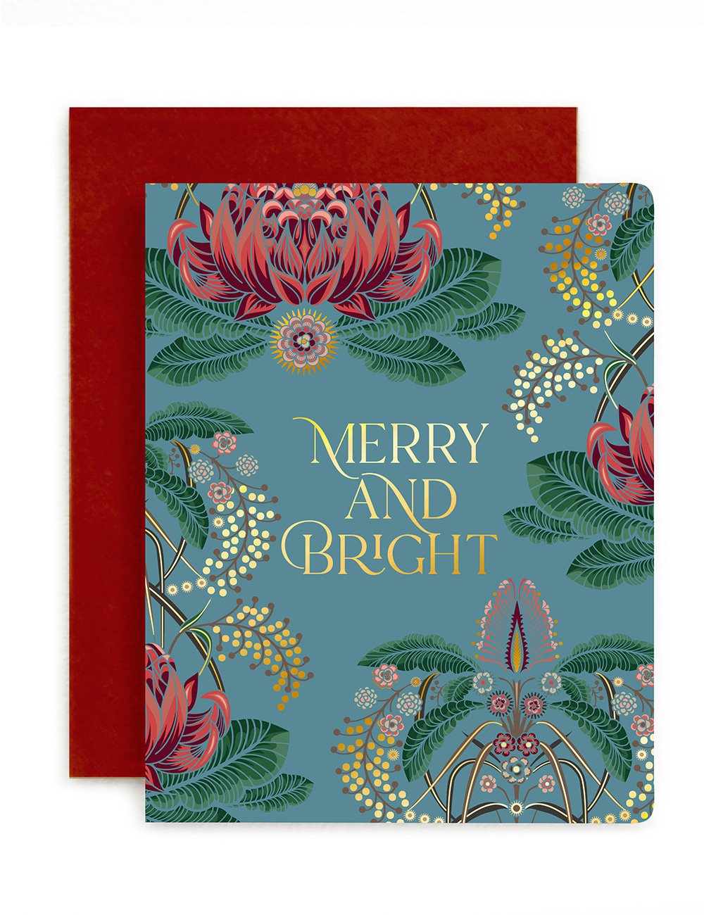 Letterpress hot foil printed Christmas greeting card 'Merry & Bright'