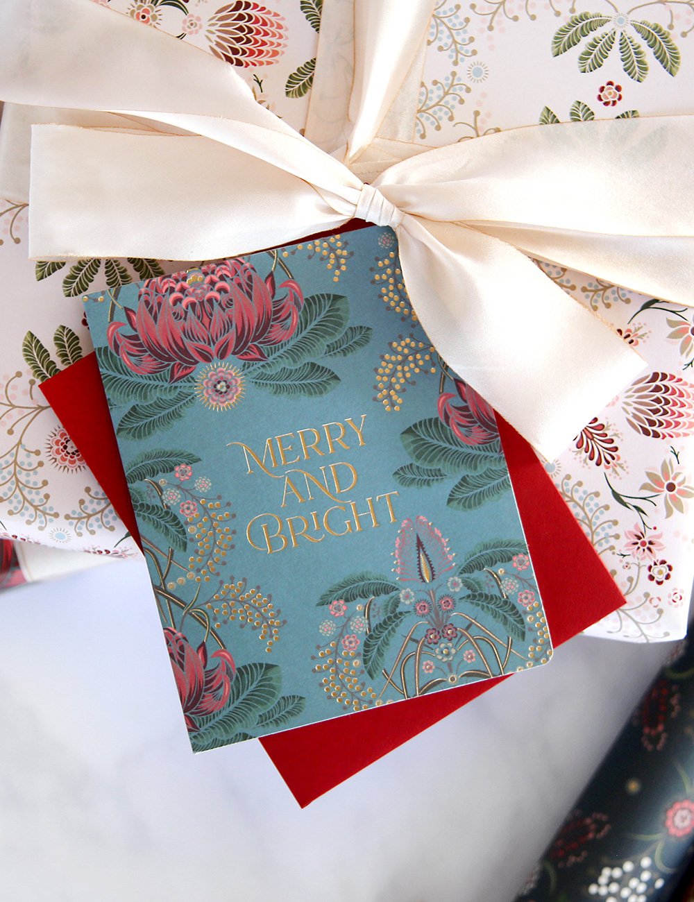 Environmentally responsible heavyweight card stock, with Australian made custom Red envelope.