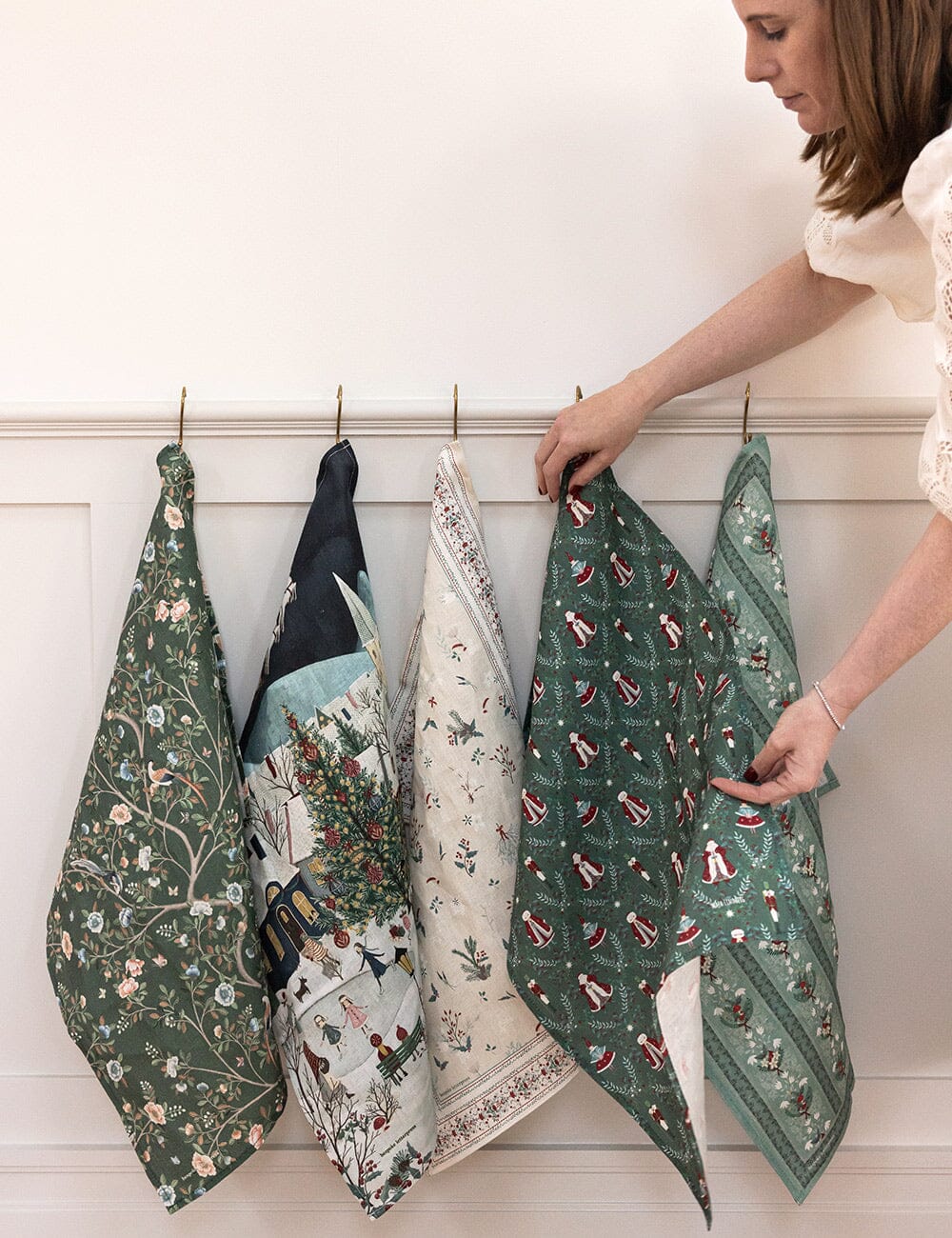 Mr & Mrs Claus Christmas Linen Tea Towel. The most beautiful Christmas artwork that would make a wonderful gift as is or wrapped around a bottle of champagne.