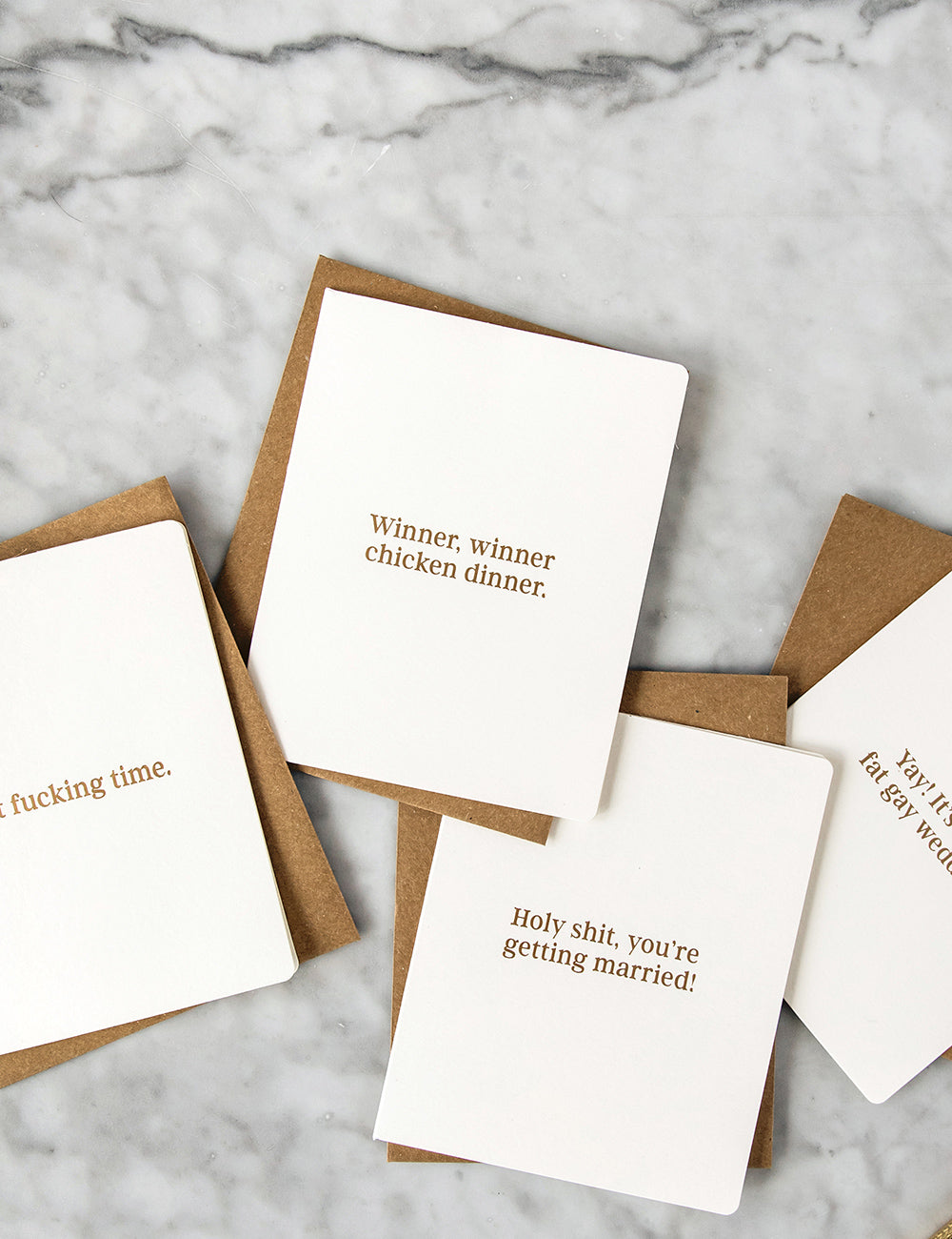 Letterpress hot foil printed "Winner, winner chicken dinner" card.